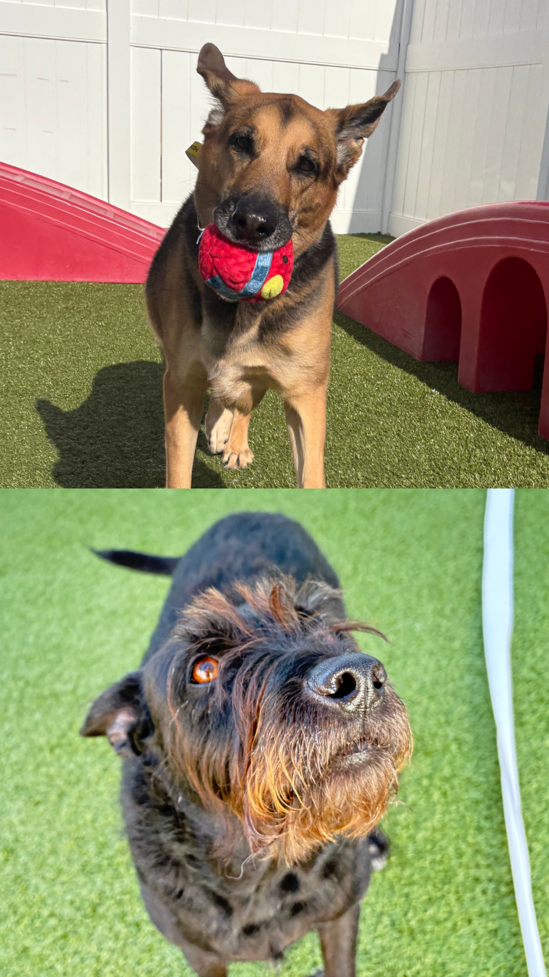 Miklós & SakariThis month we’re celebrating a very special brother duo—Miklós and Sakari! These two are avid Daycampers and frequent Sleepover Camp guests who truly embrace the Camp Life to the fullest. You can usually find Miklós out in the yard enjoying Play Pals with our Camp Counselors. He has claimed his absolute favorite toy—a red ball that looks like a bird—and around here, everyone knows it’s Miklós’ ball! He takes his playtime very seriously (and very enthusiastically).Meanwhile, Sakari prefers a cozier camp experience. He’s often spotted in the Enrichment Room soaking up Snuggle Time with a Camp Counselor. And when he’s especially happy? He isn’t afraid to let out an excited howl to let everyone know! Miklós & Sakari can be spotted in the play yards together, always side by side. These brothers love to stick together!