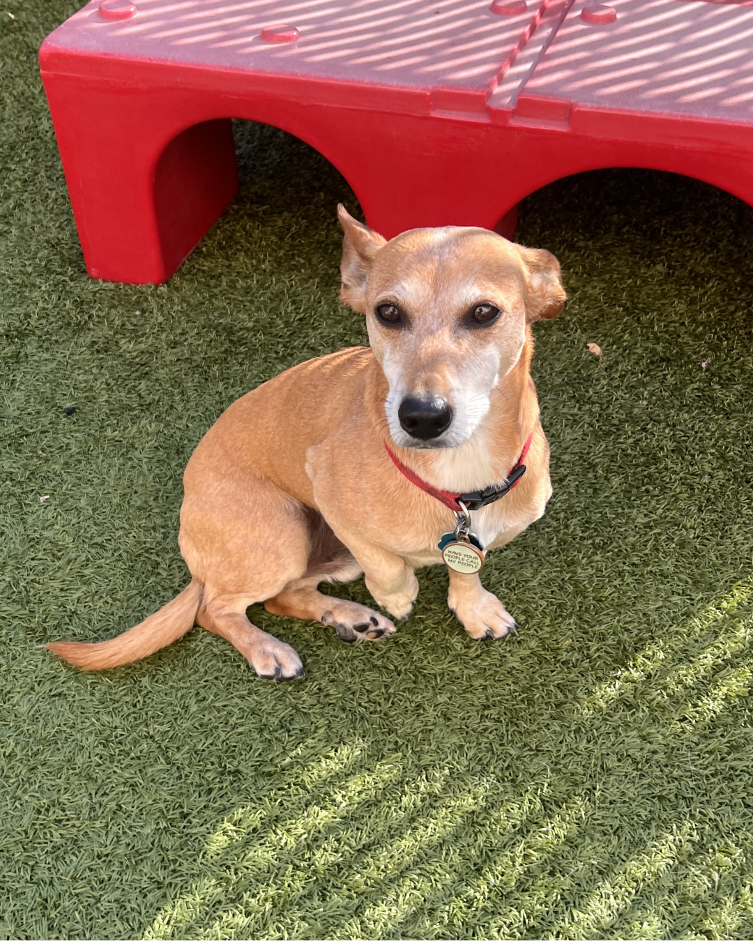 MiaBorn on June 28, 2021, Mia is full of personality, paws-on attitude, and tail-waggin’ charm. This spunky pup keeps everyone on their toes with her signature sass in the play yard. Whether she’s playfully teasing her fellow Campers or giving Camp Counselors a side-eye of approval, Mia knows how to keep Camp lively! Her favorite snack? A blast of spray cheese, of course. She’s besties with Tux and loves getting extra love from her favorite Counselor, Kaylie. Mia brings all the fun and a whole lot of heart to Camp every day!